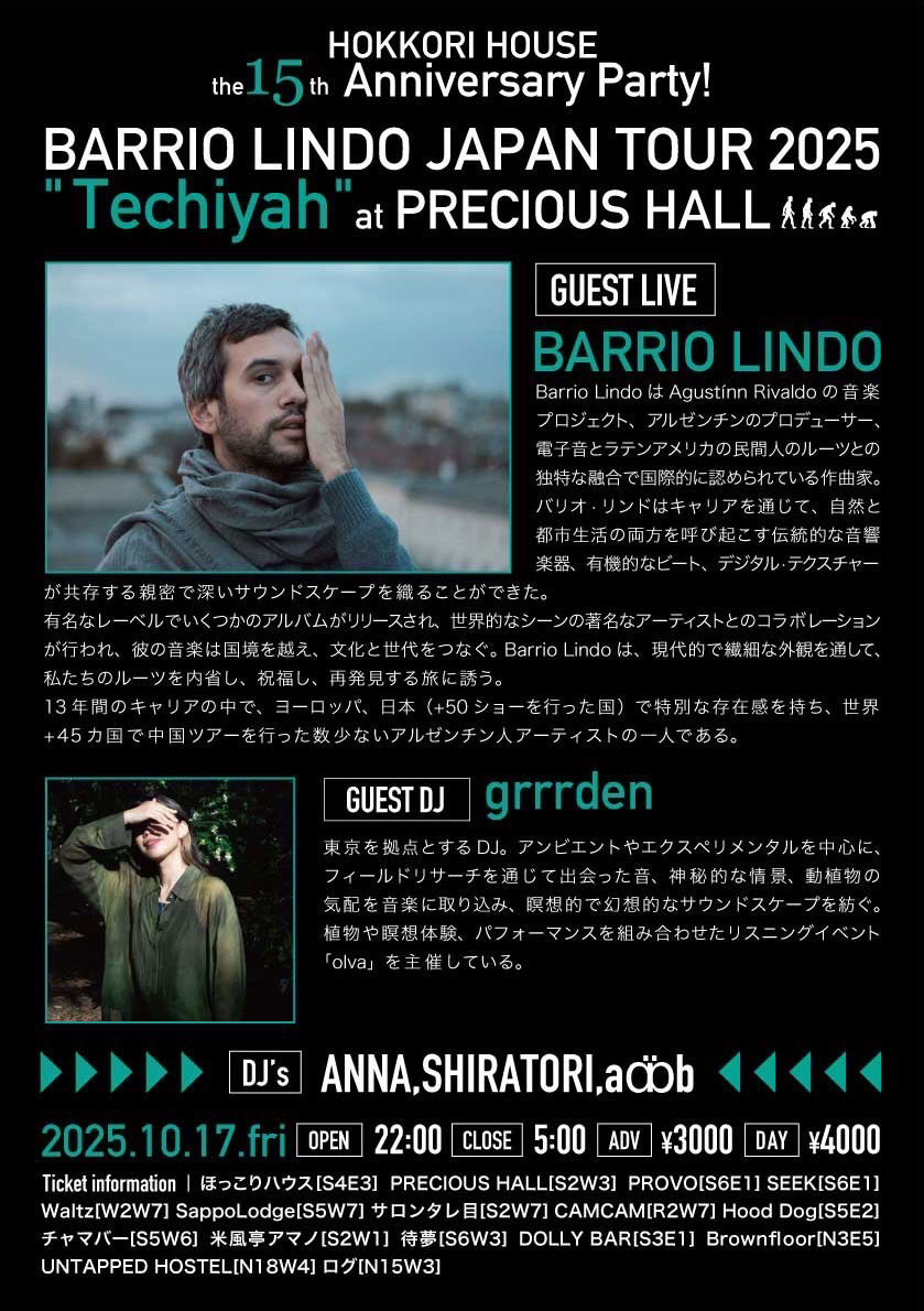 Barrio LindoはAgustinn Rivaldoの音楽プロジェクト、アルゼンチンのプロデューサー、電子音とラテンアメリカの民間人のルーツとの独特な融合で国際的に認められている作曲家。 バリオ・リンドはキャリアを通じて、自然と都市生活の両方を呼び起こす伝統的な音響楽器、有機的なビート、デジタル・テクスチャーが共存する親密で深いサウンドスケープを織ることができた。
