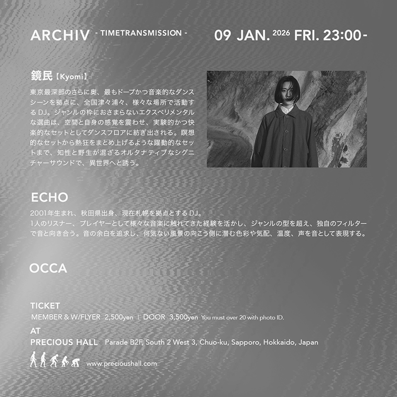 東京最深部のさらに奥、最もドープかつ音楽的なダンスシーンを拠点に、全国津々浦々、様々な場所で活動するDJ。ジャンルの枠におさまらないエクスペリメンタルな選曲は、空間と自身の感覚を震わせ、実験的かつ快楽的なセットとしてダンスフロアに紡ぎ出される。